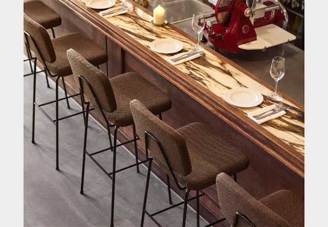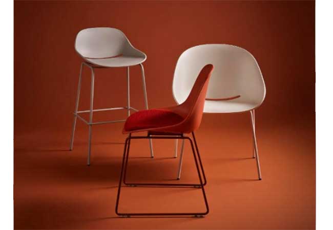 Daarnaast introduceert Artifort een barkruk binnen de Moulin-serie (foto 3), een ontwerp van Pierre Paulin. De uitbreiding sluit aan bij zijn vroege studies naar minimalistische zitvormen uit de jaren vijftig en vertaalt deze naar een hedendaagse toepassing.