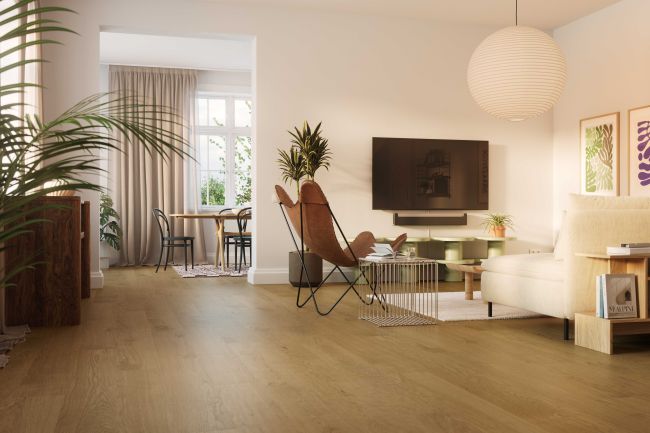 Het magazine The Spruce noemde ‘brunette vloeren’ onlangs één van de opvallendste designtrends voor interieurs in 2025. 'We zien dit terug in de toenemende belangstelling voor diepe, donkere houttinten op de markt,' zegt Julie. Maar waarom maken donkere vloeren zo'n sterke comeback in interieurs? 'Donkere houttinten creëren een uitnodigende sfeer en stralen luxe uit,' legt zij uit. 'Van de verfijnde elegantie van walnoot tot de moderne diepte van diepe eikentinten, deze vloeren blijven zowel ontwerpers als huiseigenaren fascineren.'