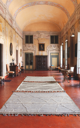 De collectie bestaat uit drie tapijten: Atlas, Clan en Dune, die allemaal met de hand zijn vervaardigd volgens de eeuwenoude techniek van het handknopen, een onschatbare vaardigheid die al generaties lang wordt doorgegeven. Het hele productieproces van deze tapijten, van het kaarden tot de laatste afwerking, gebeurt door vele deskundige handen, die elk bijdragen aan het unieke karakter van elk stuk. Op deze manier wordt elk tapijt een getuigenis van de schoonheid van een volledig handgemaakt product dat ontworpen is om lang mee te gaan.