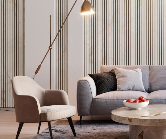 2. Latt bestaat uit panelen met verticale lijnen die een duidelijk ritme in een ruimte aanbrengen. Ze passen binnen moderne, minimalistische en organische interieurstijlen. Door de keuze tussen subtiel en expressief kunnen ontwerpers en eindgebruikers variëren tussen rust en statement.