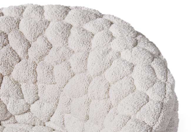 De Introvert Chair is, zoals de naam al verraadt, ontworpen voor momenten waarop je even wilt verdwijnen. De zachte, ronde vormen en het wollige, tactiele textiel creëren een gevoel van geborgenheid. Optionele accessoires zoals de Comfort Cushions en de Security Blanket versterken dat cocoon-effect. Het resultaat is een stoel die een rustpunt moet vormen in elke ruimte.