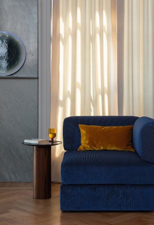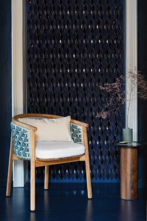 De nieuwe ontwerpen geven gerecyclede garens een nieuwe invulling als luxueuze, duurzame textielsoorten en verkennen een gedurfde maar tijdloze materiaalexpressie. Met oker en diepblauw als bepalende tinten, brengt het palet optimisme en terughoudendheid in evenwicht met warme, aardse tinten tegen een achtergrond van koelere, gestructureerde tinten die moeiteloos tussen stemmingen en omgevingen wisselen.