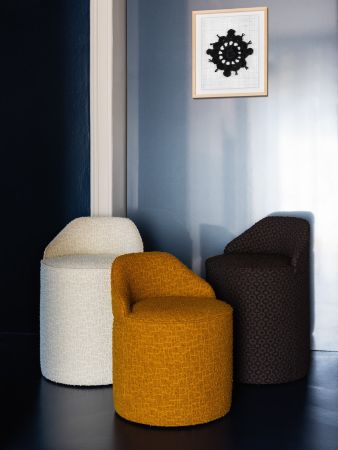 3. Met een rond geometrisch motief geweven in een zachte, garengeverfde bouclé-achtergrond, biedt Benu Globe een grafische maar ingetogen optie voor bekleding. Gemaakt van gerecyclede vlamvertragende garens en verkrijgbaar in negen kleuren, introduceert het een zacht ritme en visuele interesse, terwijl het een aanvulling vormt op de effen en meer gestructureerde ontwerpen van de collectie.
